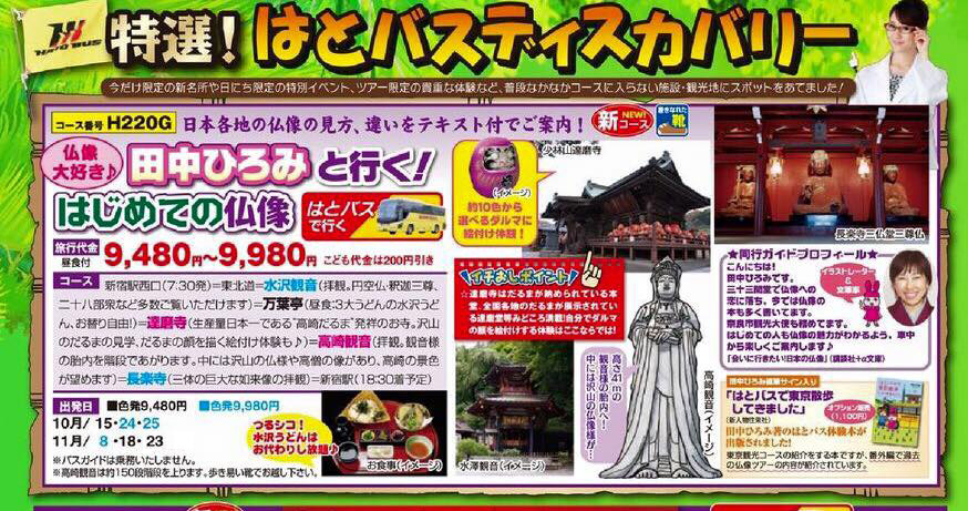 又秋に、はとバスツアー【田中ひろみと行く!はじめての仏像」〜群馬編〜】行います!ぜひ、ご参加ください。